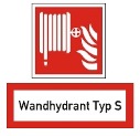 Symbolschild mit Textschild „Wandhydrant Typ S“ (Selbsthilfe), gemäß ISO 7010
